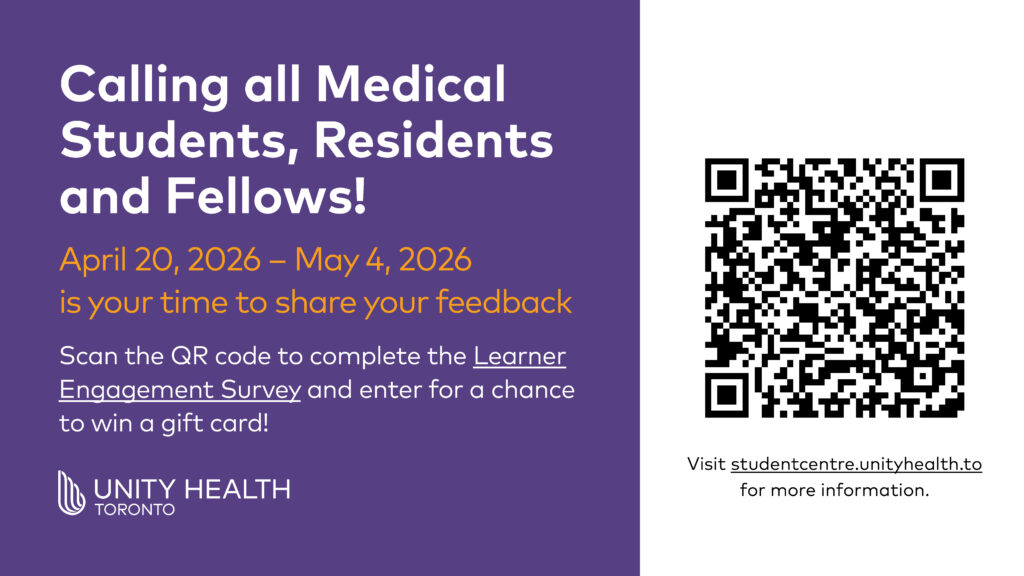 We hope that you are having a terrific experience at Unity Health! Learners play an integral role in the fabric of our healthcare teams.